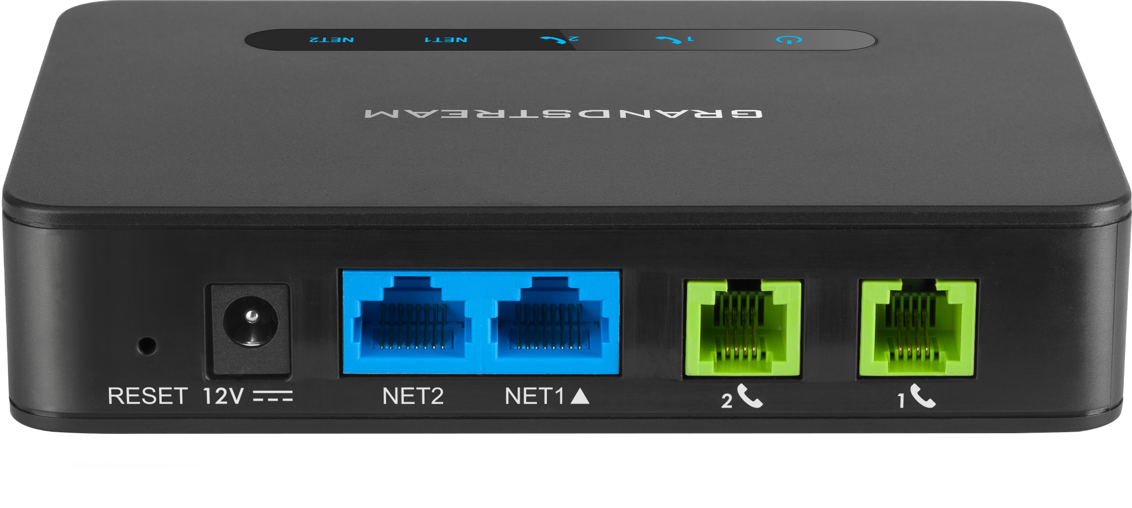 - 電源、NET1、NET2、電話1、電話2‐LEDインジケーター