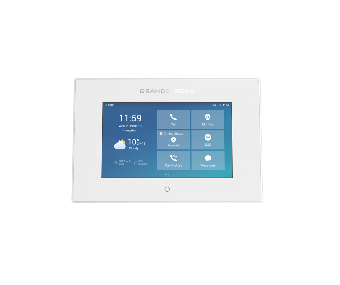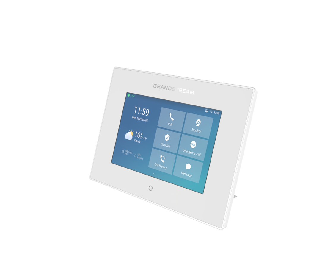 GSC3570は、施設内線通話、ドアアクセス、監視セキュリティなどを管理する専用デバイスを必要とするビジネス向けにデザインされた強力なインターホン/施設管理ステーションです。このデバイスは、容易なドアコントロール、インターホンと一斉放送通信、セキュリティカメラ管理と施設全体のユニファイドコミュニケーションの統合ソリューションとして壁掛けや卓上設置が可能です。 GSC3570は、7インチタッチパネルLCDと全二重双方向のHDオーディオ機能を装備しています。これはPoE対応100MbpsネットワークポートおよびデュアルバンドWi-Fiサポートによる柔軟なネットワーク接続性を提供します。このSIPインターホン/施設管理ステーションは、GDSシリーズドアアクセスデバイス、GSCシリーズインターホン/一斉放送通信デバイス、セキュリティカメラなどを含めたGrandstream全体の製品ラインを統合するようにデザインされています。GSC3570は、集中監視と管理のために必要とされる施設アクセス、通話とセキュリティのあらゆる設置ニーズに理想的です。