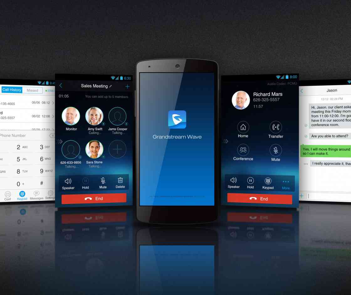 Grandstream Waveは、世界中のどこからでも、Android™ またはiOS™機器で、ビジネスまたは家庭用SIPアカウントを使って音声電話の発信および受信ができる無料のソフトホン・アプリです。このアプリは、最大6個のSIPアカウントの統合や6者間テレビ電話に対応し、PBXの監視が可能なほか、最大24個のバーチャルBLFキーでスピードダイヤルも活用できます。