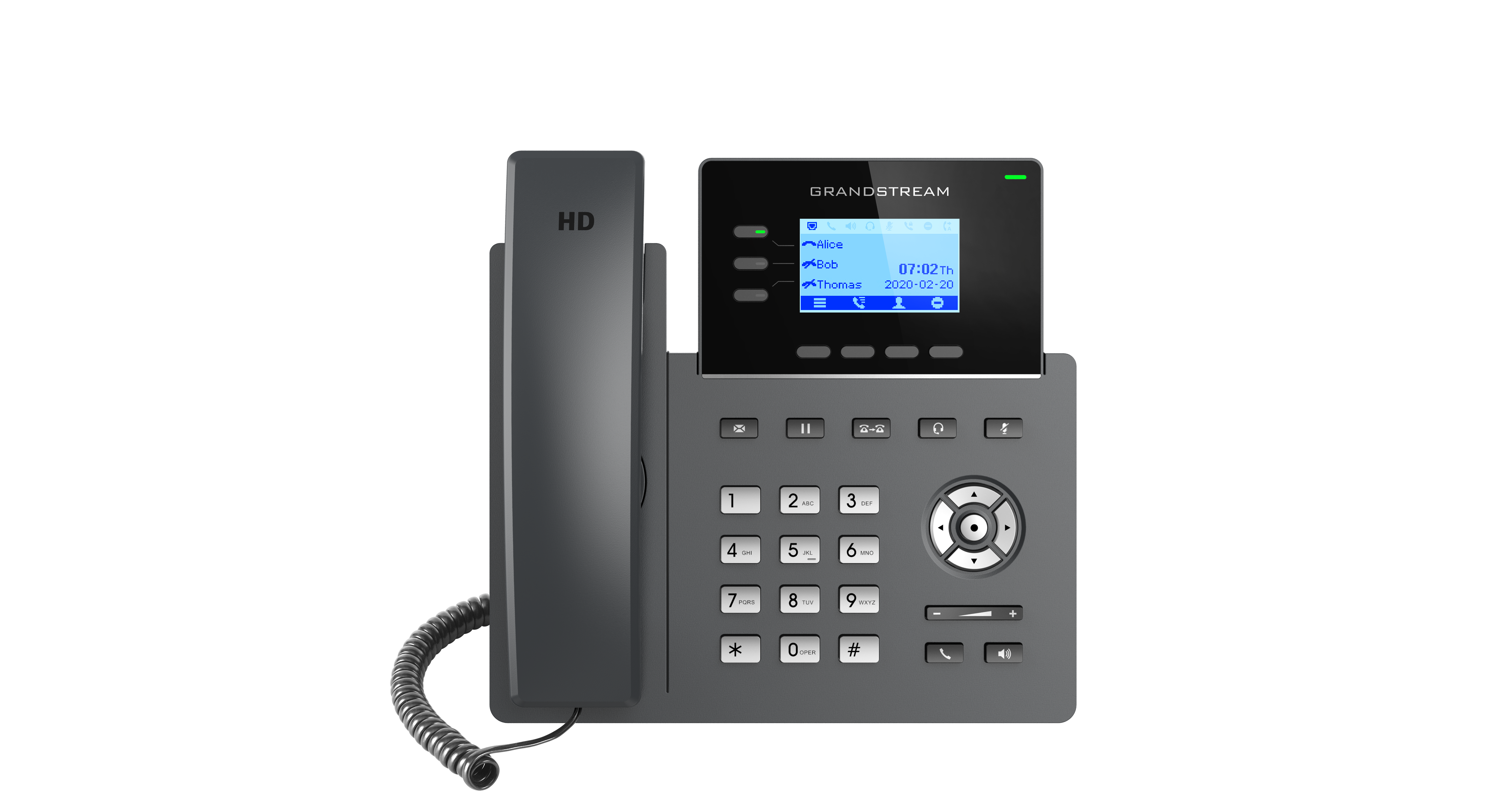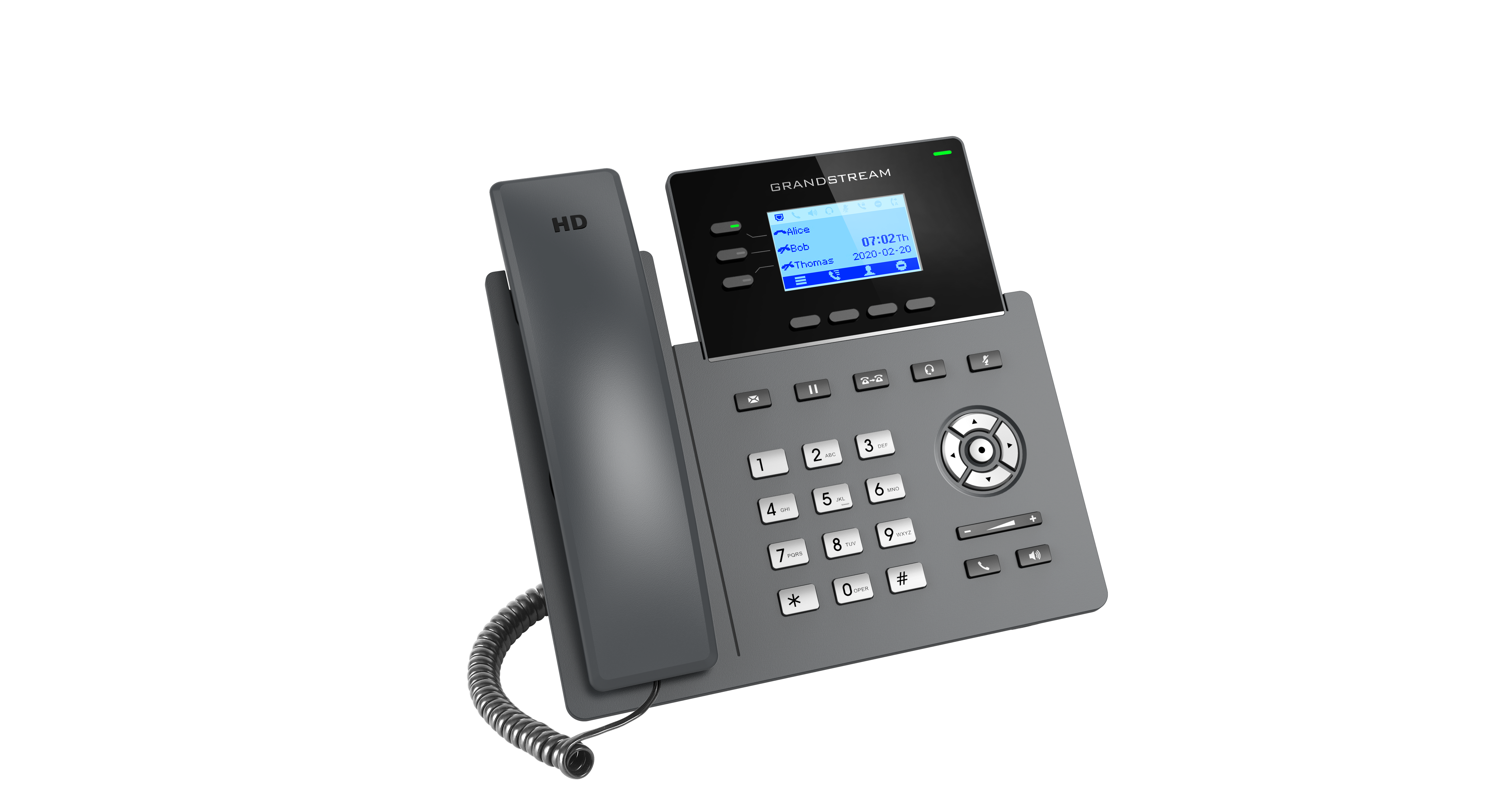 キャリアグレードIP電話機GRPシリーズのGRP2603は、大規模導入と容易な管理を可能にするゼロタッチプロビジョニング用にデザインされたベーシック3回線モデルです。これは生産性を最大化する5者間音声会議、内蔵PoE(GRP2603P)を装備し、Grandstreamデバイスマネジメントシステム(GDMS)によってサポートされています。オフィスワーカーとリモートワーカーの基本的なニーズに応えて開発されたGRP2603により、操作及び設置が容易な音声端末を提案します。